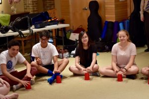 On Day 1 and Day 2, the goal was getting to know each other and evaluating the preparedness of each student. On Day 2, the group activity focused on yoga and rhythm with cup percussion.