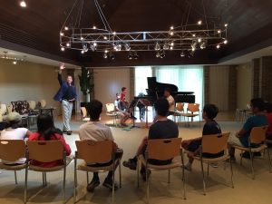 New Muse Duo who demonstrated what a prepared piano could sound like and the various techniques employed. This was quite a discovery for all campers and they got to look inside the piano, check the notations on the score and listen to the wonderful music making of the New Muse Duo in the three pieces they performed.