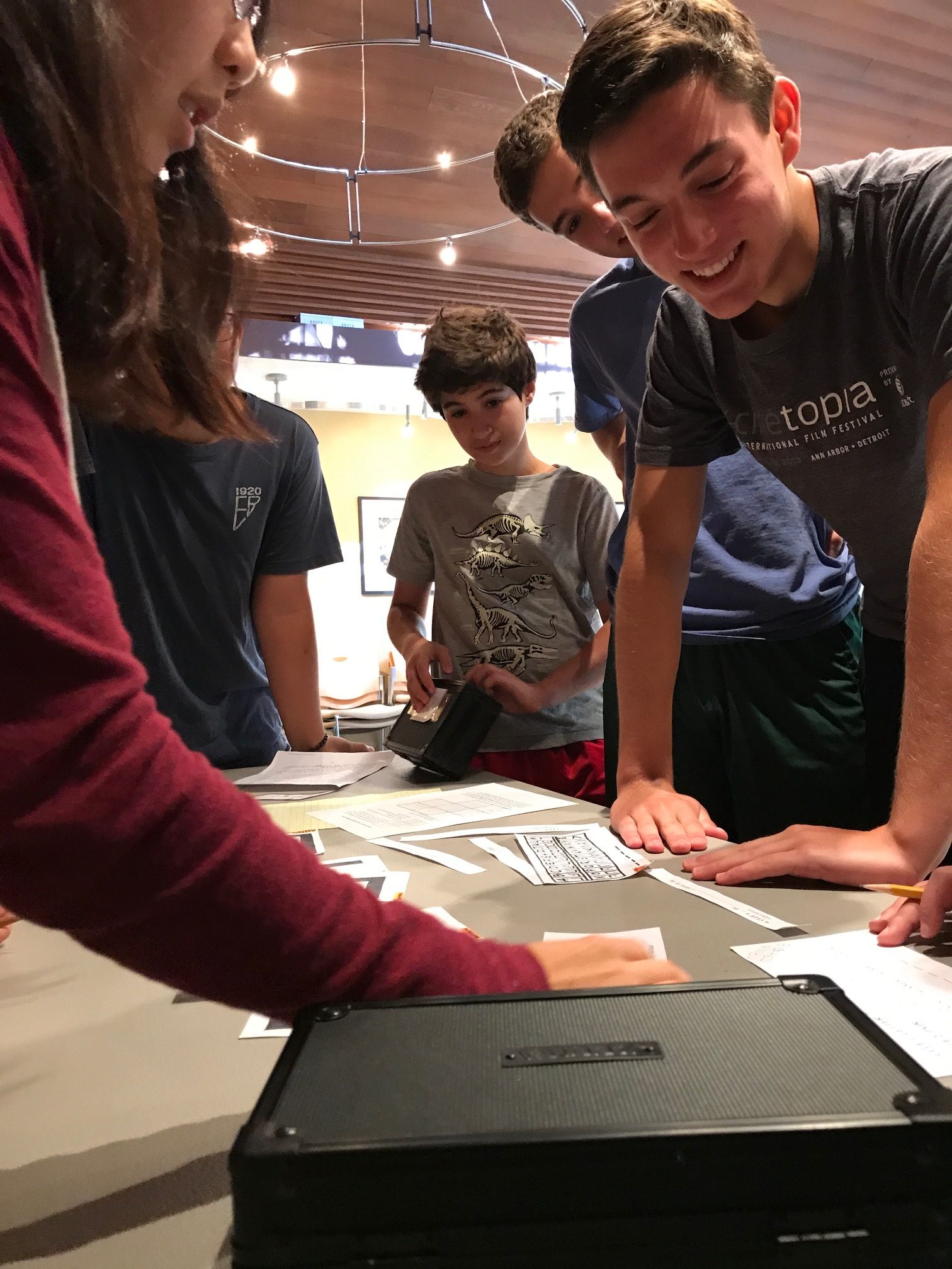 room”. All campers had 35 minutes to solve multiple puzzles together to find the key to escape the room! All the clues were taken from the camp repertoire and various information pertaining to the campers (age, grade, etc.) Some clues were based on a tiny section of a score or a short sound clip. Imagine the excitement of the 17 campers coming out of the room!